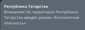 В Татарстане введён режим беспилотной опасности.