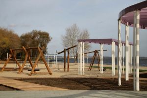 В Менделеевске смонтировали спортплощадки и места для детского отдыха на пляже