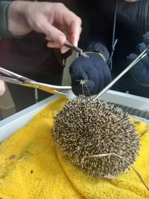 В ветклинике Менделеевска спасли ёжика, запутавшегося в рыболовной сетке